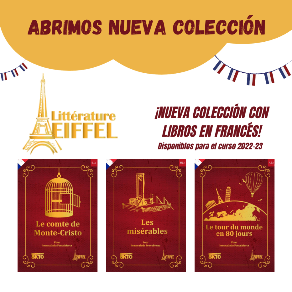 Queremos presentaros nuestra nueva colección: [inserta nombre]. En ella podremos encontrar los mejores clásicos de la literatura francófona repartidos entre los distintos niveles del Marco Común Europeo de Referencia para las lenguas: A1, A2, B1… según el que se esté trabajando.