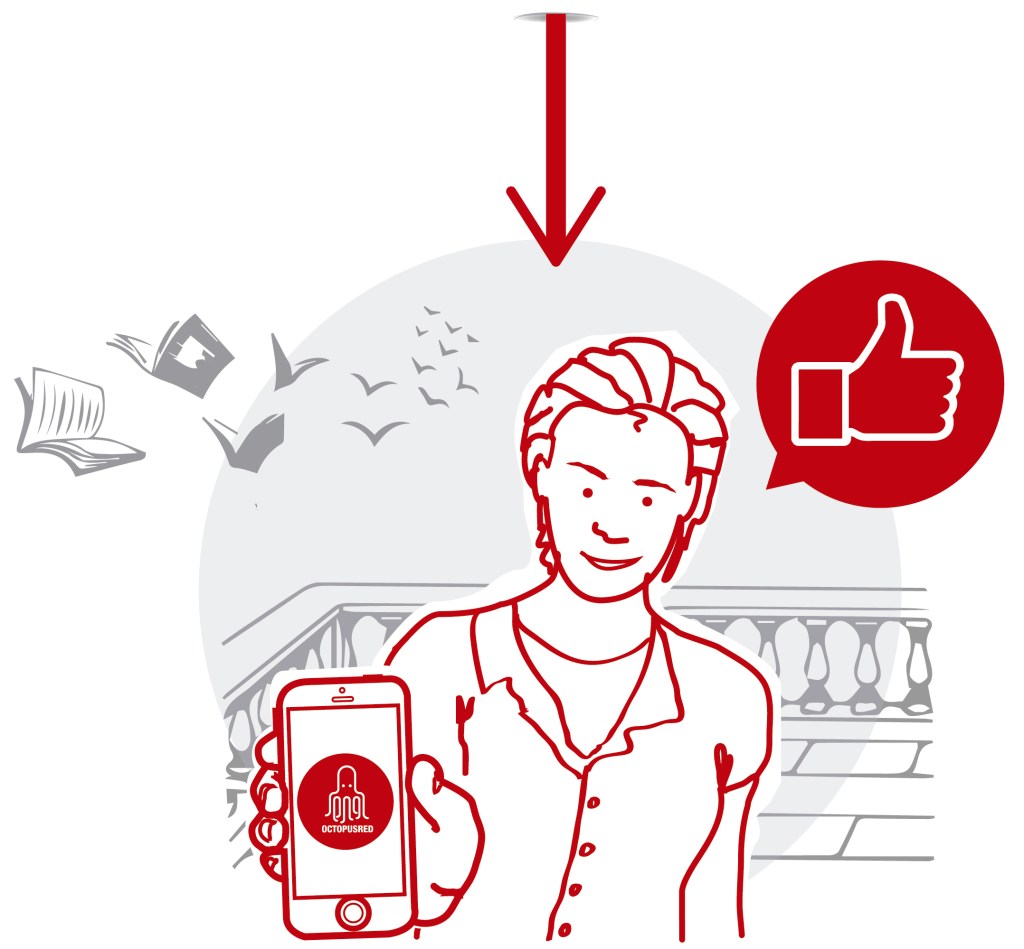 Imagina que ella ha descubierto que OCTOPUSRED es una plataforma de lectura y edición digital, con una Biblioteca Educativa Digital (BED) compuesta por un CATÁLOGO DE LIBROS digitales especialmente pensado para alumnos y alumnas de secundaria y bachillerato a la que se pueden suscribir fácilmente los centros de enseñanza. Una biblioteca digital, en la que los estudiantes pueden leer todo lo que quieran, cuando quieran y donde quieran, en todos sus dispositivos, sin descargas y sin necesidad de estar conectado siempre a Internet. Un Entorno Virtual de Lectura y Aprendizaje, donde los estudiantes pasan de ser lectores pasivos a lectores activos de esta experiencia social única, donde los libros digitales son una herramienta que hace «de la lectura, el conocimiento, la educación y la innovación una fuerza de cambio social.«